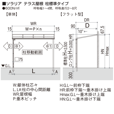 仕 様注意点 【仕様】1階設置用・600N/m2・柱標準タイプ・関東間 (柱の位置が間口方向に移動できます。
