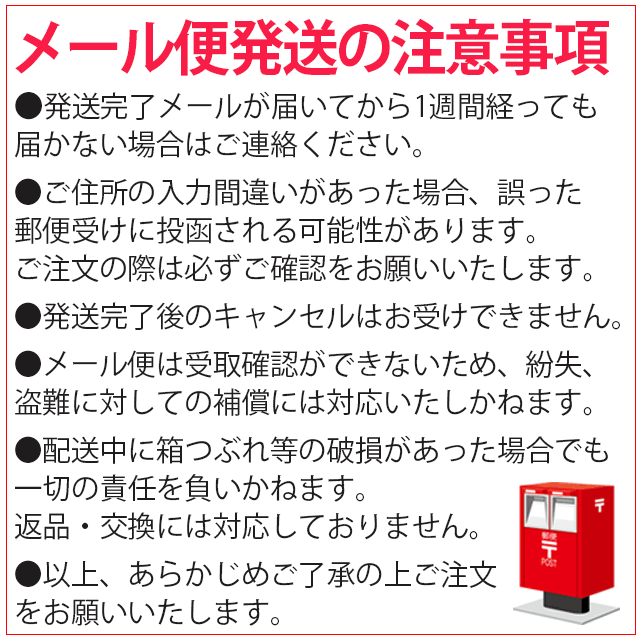 この商品はメール便での発送のため、日時指定出荷ができず、ご希望日前後にポスト投函されます。