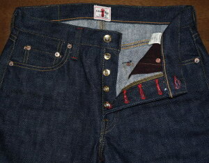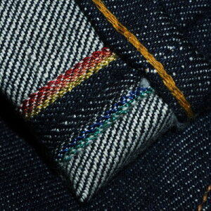 しかもカラフルかつ豪華なレインボーセルビッチ仕様です! その上そのレインボーミミを、持ち出し裏、センターループ、バックポケット、コインポケット等、1本のジーンズの随所にちりばめたとても贅沢なつくり! さらにボタンにはこれまた贅沢な金松ボタン。