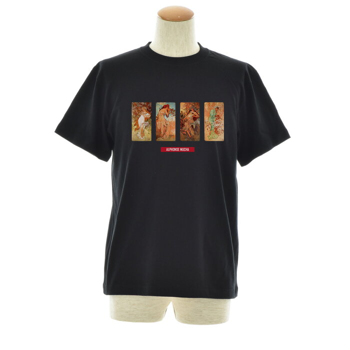 【アートTシャツ】ミュシャ Tシャツ アルフォンス・ミュシャ 装飾パネル連作 四季 Life is ART ライフ イズ アート 半袖 ショートスリーブ SS S/S ブラック 黒 メンズ レディース 大きいサイズ ビック おしゃれ アート 絵画 名画 ティーシャツ S M L XL XXL ブランド